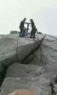 在預(yù)先打好的孔中,插入液壓劈裂機(jī),調(diào)整劈裂方向,使其劈裂方向一致。