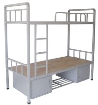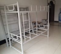 學生床公寓床床鋪面凈長1920mm;寬900mm;學生床公寓床護欄板缺口長500mm;學生床公寓床爬梯凈寬300mm,緊貼床體平行連接;學生床公寓床床屜托稱間距350mm。學生床公寓床所有金屬部分要求靜電噴涂,顏色亞光灰白色。