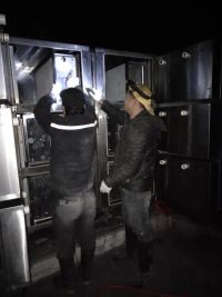 4、倒入工業(yè)燒堿,兵加入40度熱水浸泡約15分鐘,將泡洗后的電場(chǎng)用高壓水槍整體噴洗。