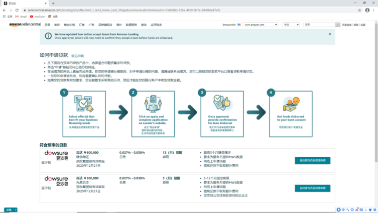 如何解決現(xiàn)金流問題?賣家可以從內(nèi)外兩個(gè)方面入手。申請(qǐng)亞馬遜融資計(jì)劃,我們可以從亞馬遜店鋪后臺(tái)點(diǎn)擊【借貸】-選擇豆沙包服務(wù),詳情請(qǐng)看下圖: