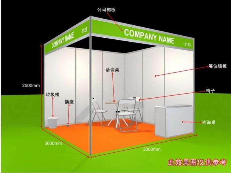 1、標準展臺:3 ㎡×3 ㎡=9 ㎡;普通標展:6800RMB/個;雙面開口標展:7800RMB/